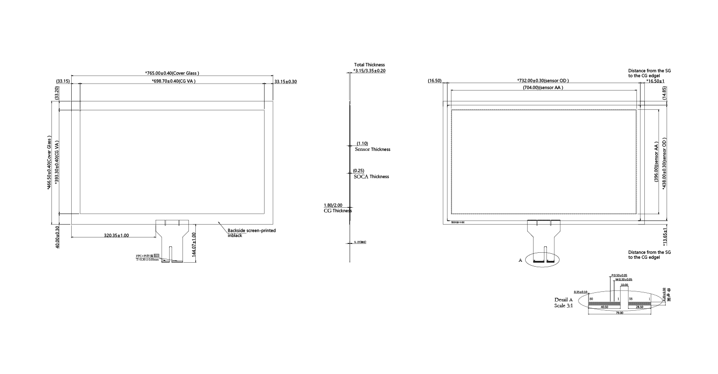 | Total Thickness | 3.15±0.2 mm (Cover 1.8 mm & Sensor 1.1 mm) |